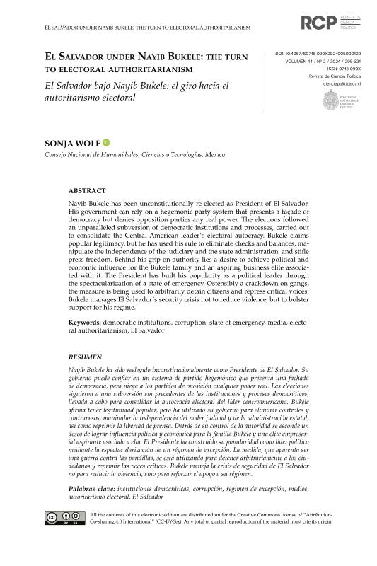 RCP Sonja Wolf PHD - EL Salvador under Nayib Bukele: The Turn to Electoral Authoritarianism
