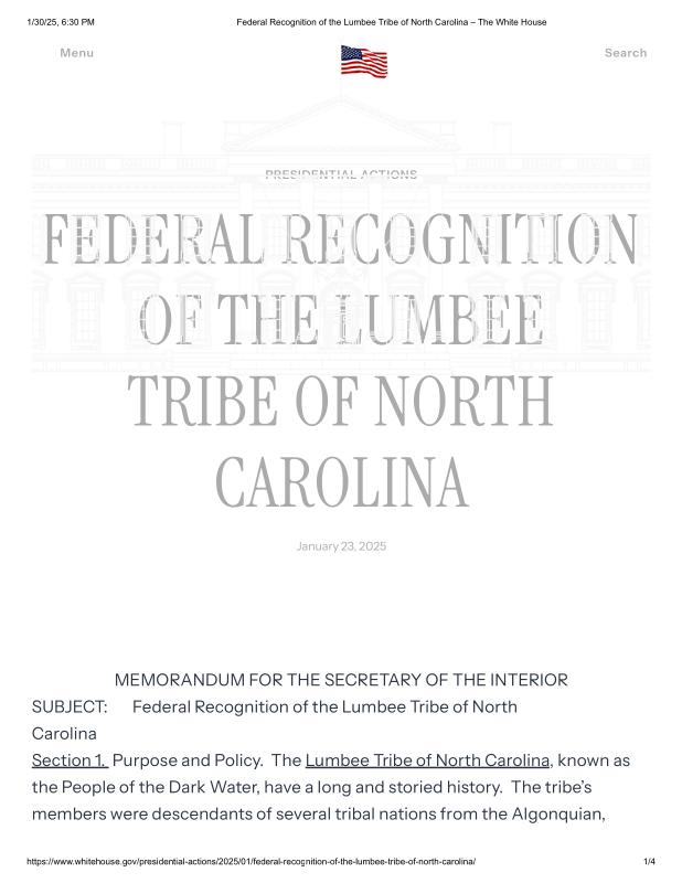 Native American Tribal Recognition Memorandums