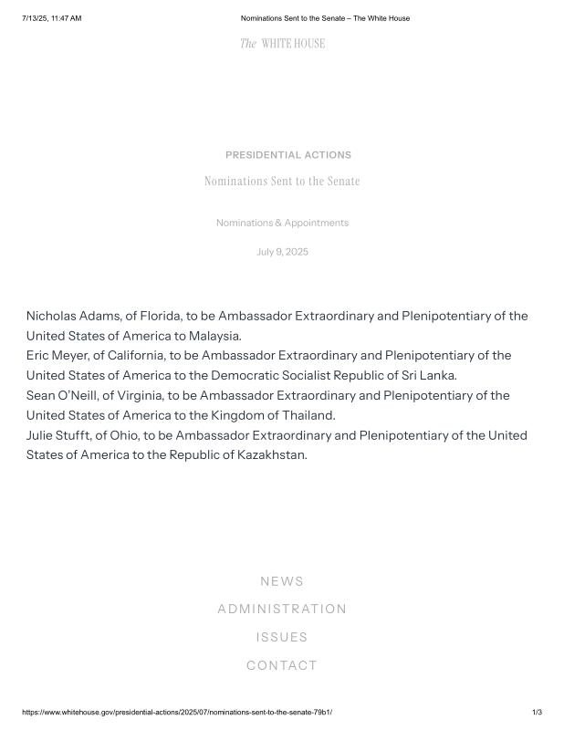 Collection - Government - United States - The White House - Donald Trump - Second Term - 2025 - Nominations