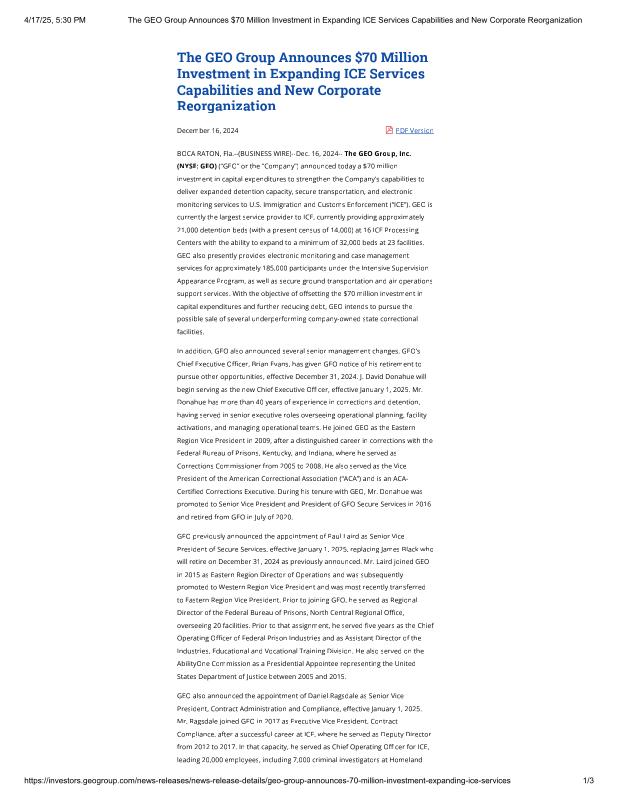 GEO Group Expands ICE