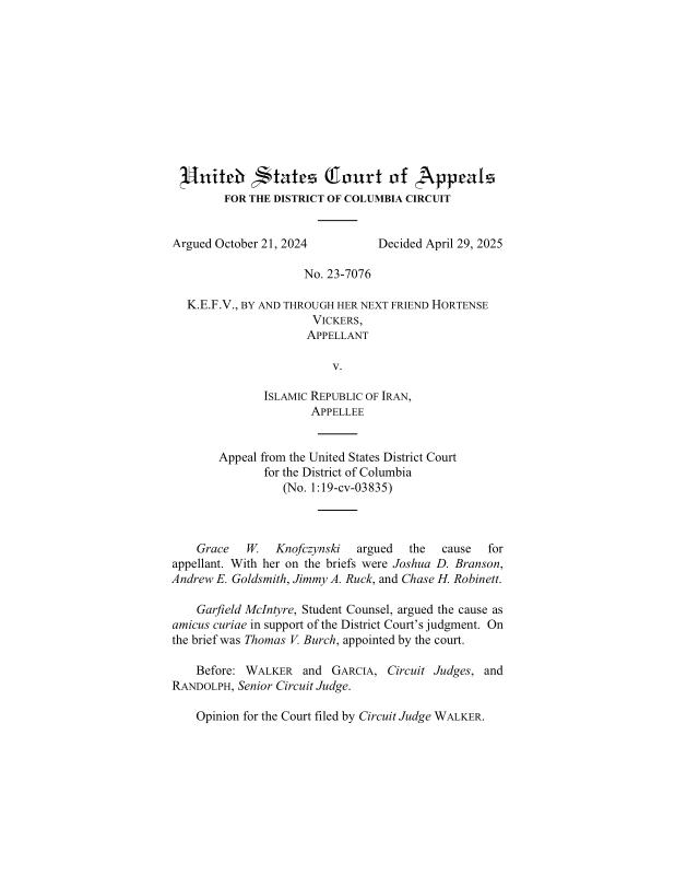 Court Cases K.E.F.V. v. Islamic Republic of Iran, No. 23-7076