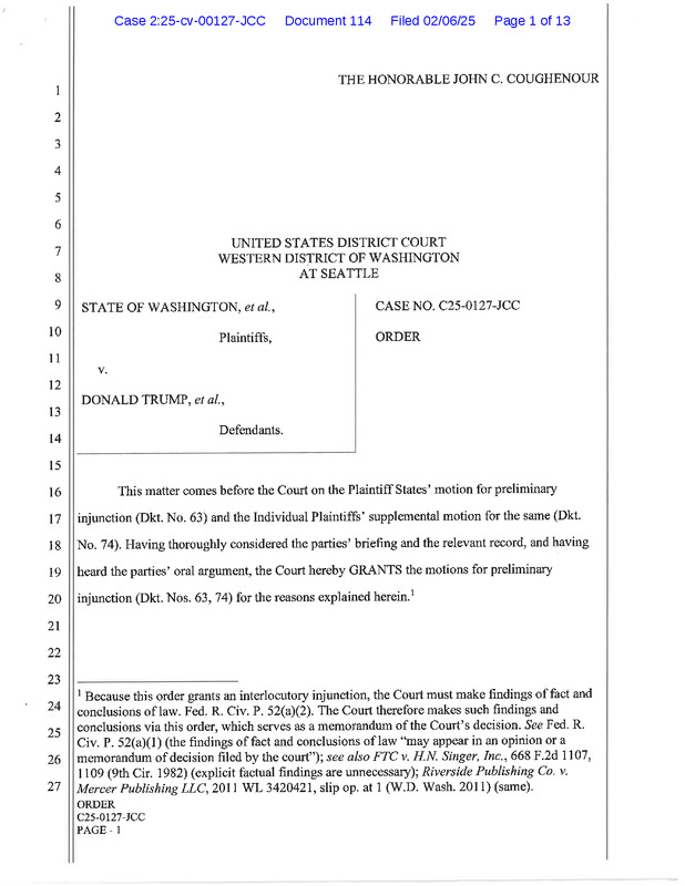 State of Washington, et al., v. Donald Trump, et al., cv-00127-JCC