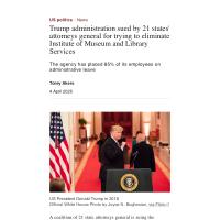 Trump administration sued by 21 states' attorneys general for trying to eliminate Institute of Museum and Library Services - The Art Newspaper - International art news and events.pdf -