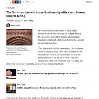 dropbox/COLLECTION- Government/The White House/EO's/trump smithsonian EO/JAN 29 After Trump's executive order, the Smithsonian will close its diversity office _ NPR.pdf -