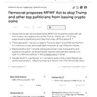 dropbox/COLLECTION- Government/Conflict of Interest-Corruption/Trump Meddles in Business Ventures/Democrat proposes MEME Act to stop Trump and other top politicians from issuing crypto coins.pdf