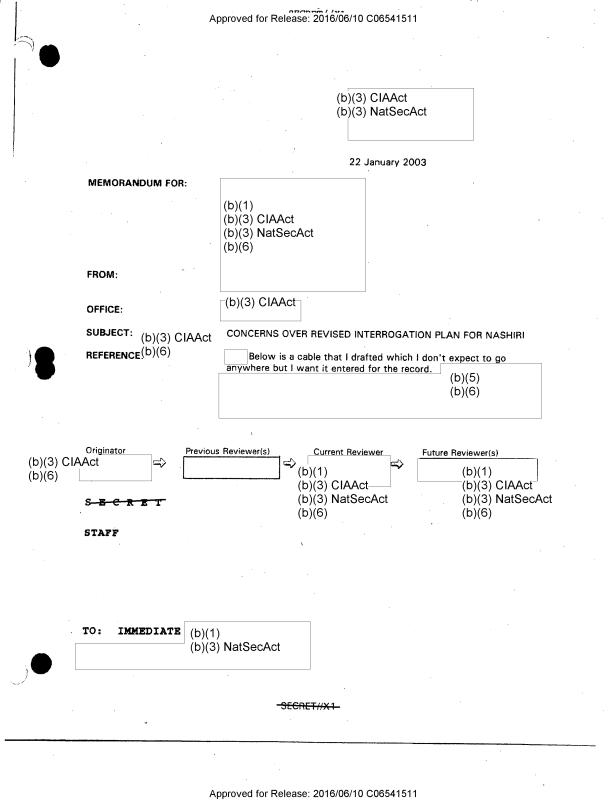 CONCERNS OVER REVISED INTERROGATION PLAN FOR NASHIRI