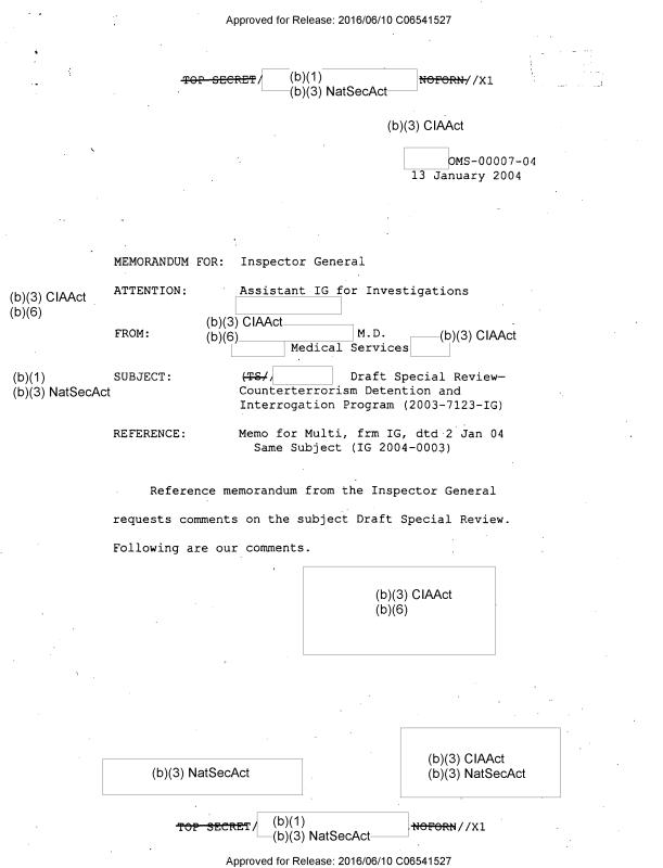 DRAFT SPECIAL REVIEW - COUNTERTERRORISM DETENTION AND INTERROGATION PROGRAM (2003-7123-IG)