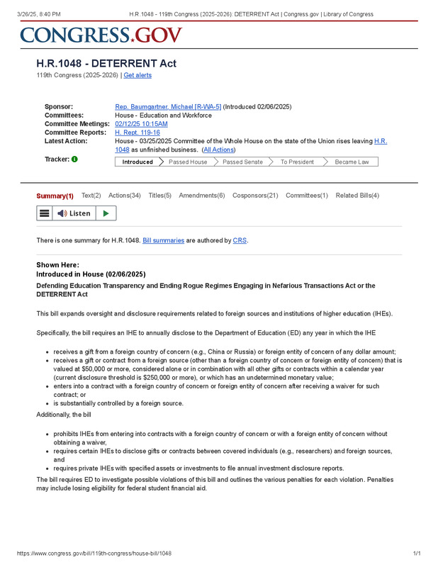 dropbox/COLLECTION- Legal/National Legislation/2025/2-6-2025/H.R.1048 - 119th Congress (2025-2026)_ DETERRENT Act _ Congress.gov _ Library of Congress.pdf