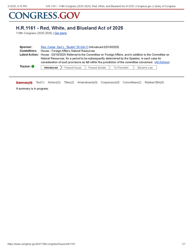 dropbox/COLLECTION- Legal/National Legislation/2025/2-10-2025/H.R.1161 - 119th Congress (2025-2026)_ Red, White, and Blueland Act of 2025 _ Congress.gov _ Library of Congress.pdf