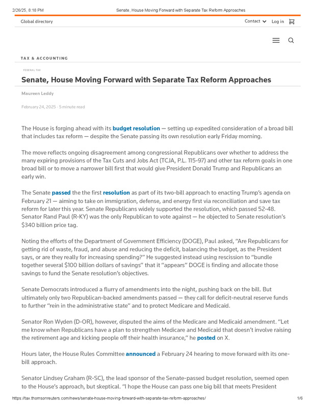 Senate, House Moving Forward with Separate Tax Reform Approaches.pdf