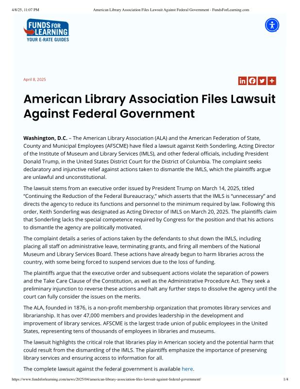 American Library Association Files Lawsuit Against Federal Government - FundsForLearning.com.pdf