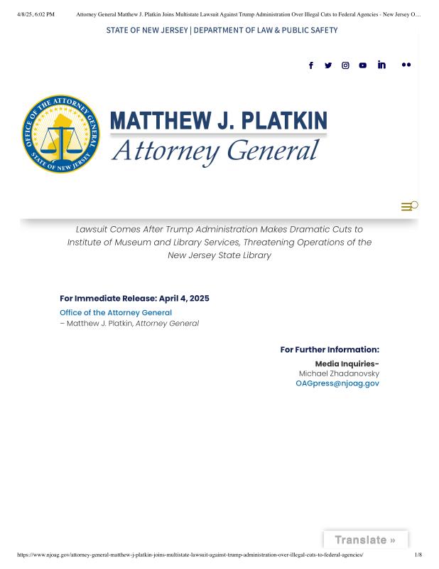 Attorney General Matthew J. Platkin Joins Multistate Lawsuit Against Trump Administration Over Illegal Cuts to Federal.pdf