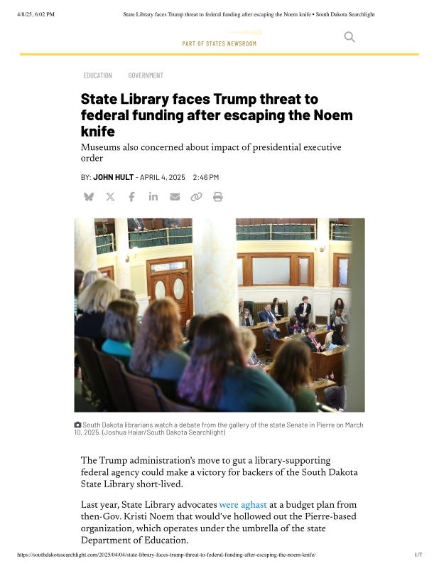 State Library faces Trump threat to federal funding after escaping the Noem knife South Dakota Searchlight.pdf
