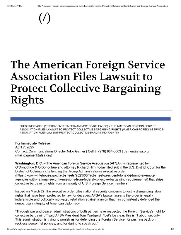 The American Foreign Service Association Files Lawsuit to Protect Collective Bargaining Rights _ American Foreign Service Association.pdf