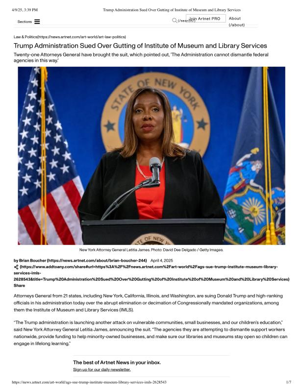 Trump Administration Sued Over Gutting of Institute of Museum and Library Services.pdf