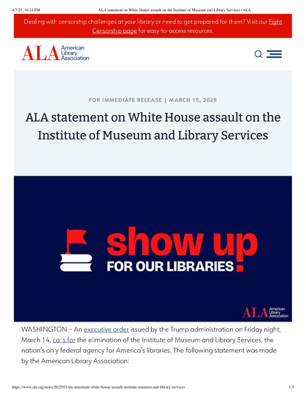 ALA statement on White House assault on the Institute of Museum and Library Services _ ALA.pdf