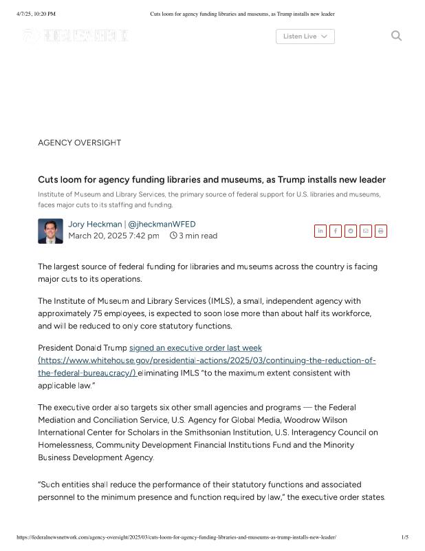 Cuts loom for agency funding libraries and museums, as Trump installs new leader.pdf