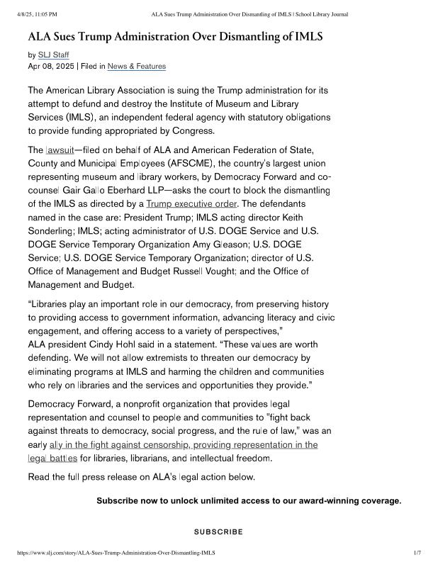 ALA Sues Trump Administration Over Dismantling of IMLS _ School Library Journal.pdf
