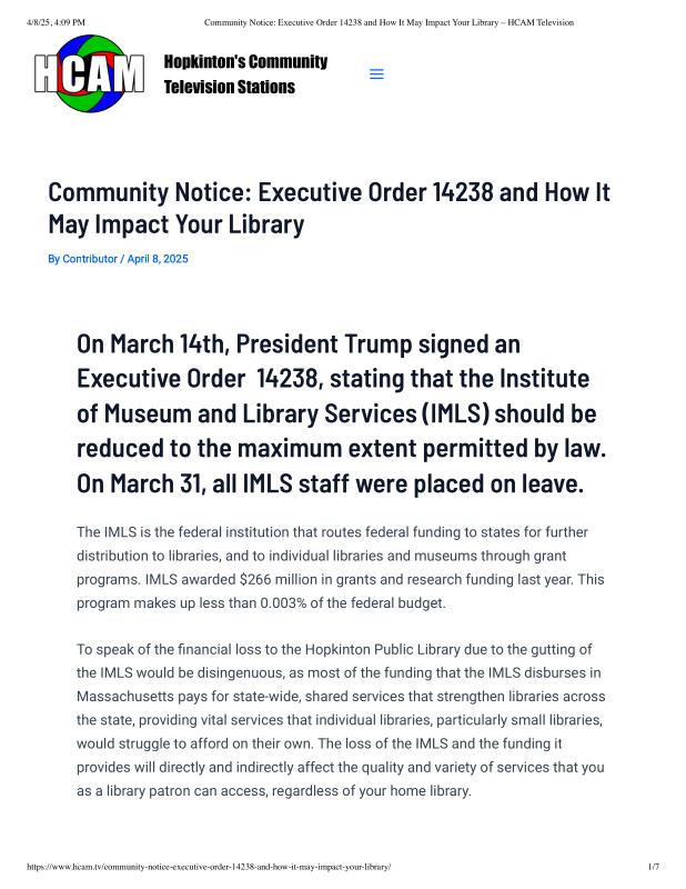 Community Notice_ Executive Order 14238 and How It May Impact Your Library – HCAM Television.pdf