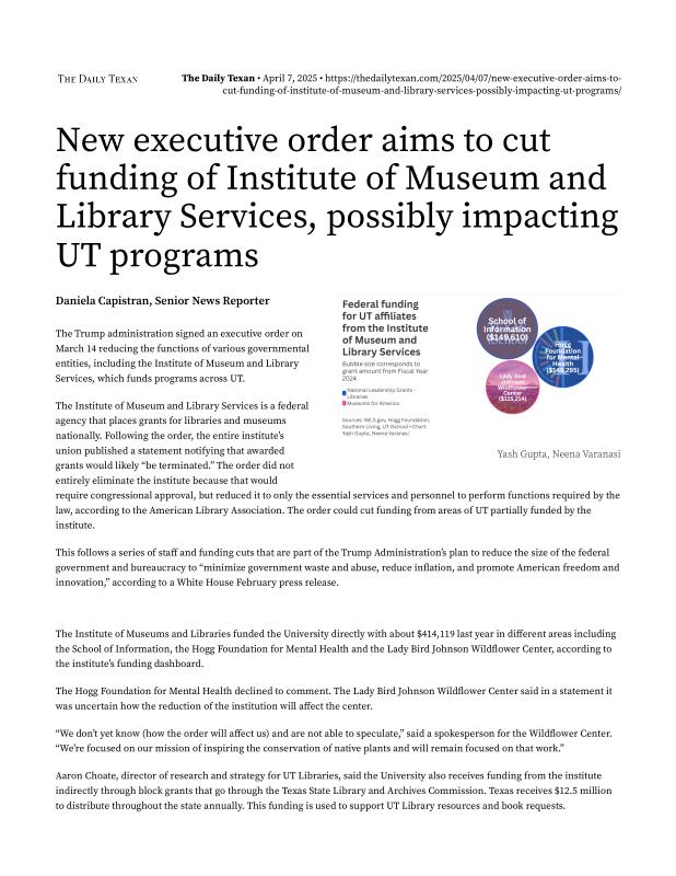 New executive order aims to cut funding of Institute of Museum and Library Services, possibly impacting UT programs – The Daily Texan.pdf