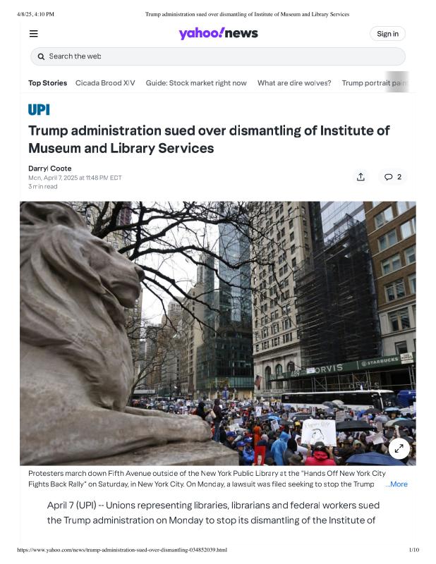 Trump administration sued over dismantling of Institute of Museum and Library Services.pdf
