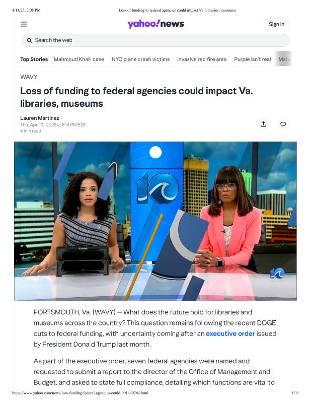 Loss of funding to federal agencies could impact Va. libraries, museums.pdf