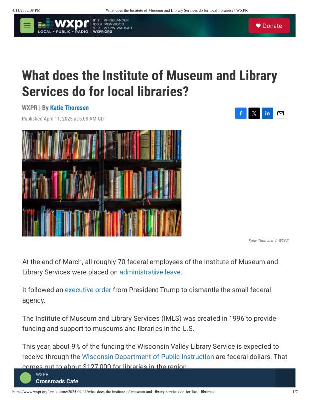 What does the Institute of Museum and Library Services do for local libraries_ WXPR.pdf