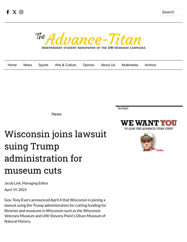 Wisconsin joins lawsuit suing Trump administration for museum cuts - The Advance-Titan.pdf