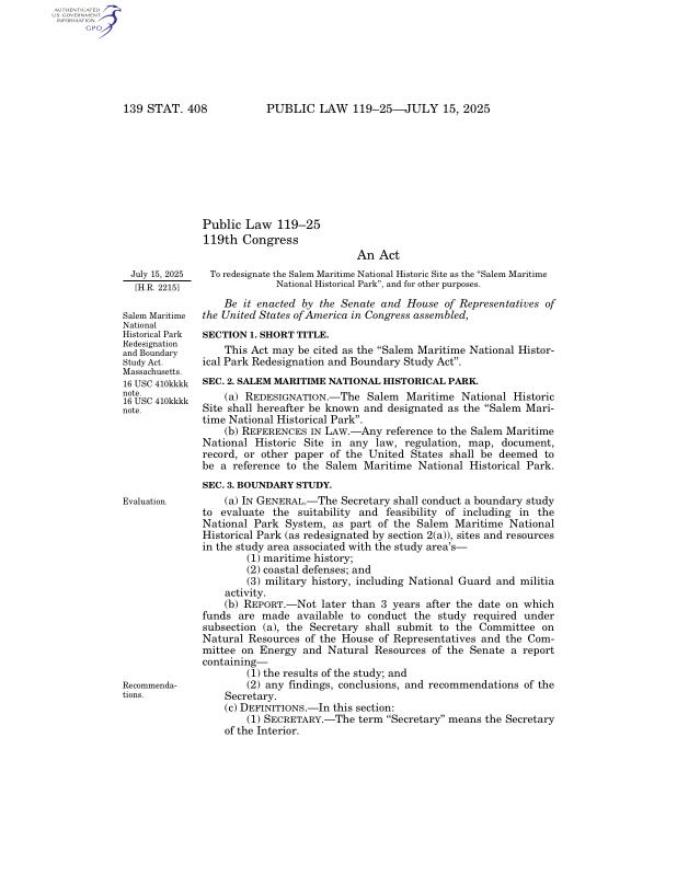 dropbox/COLLECTION- Legal/National Legislation/Salem maritime national historical park redesignation and boundry study act.pdf