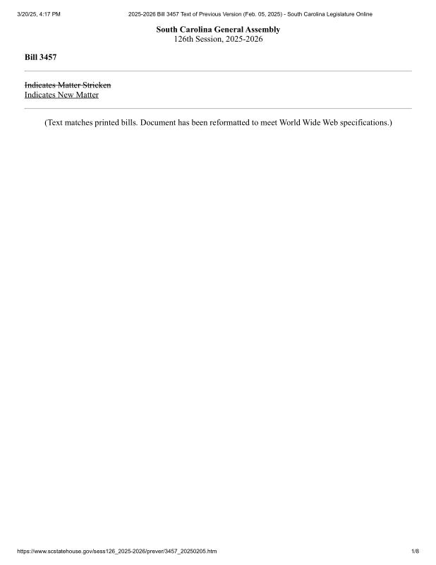 dropbox/COLLECTION- Legal/State Legislation/South Carolina/2025-2026 Bill 3457 Text of Previous Version (Feb. 05, 2025) - South Carolina Legislature Online.pdf