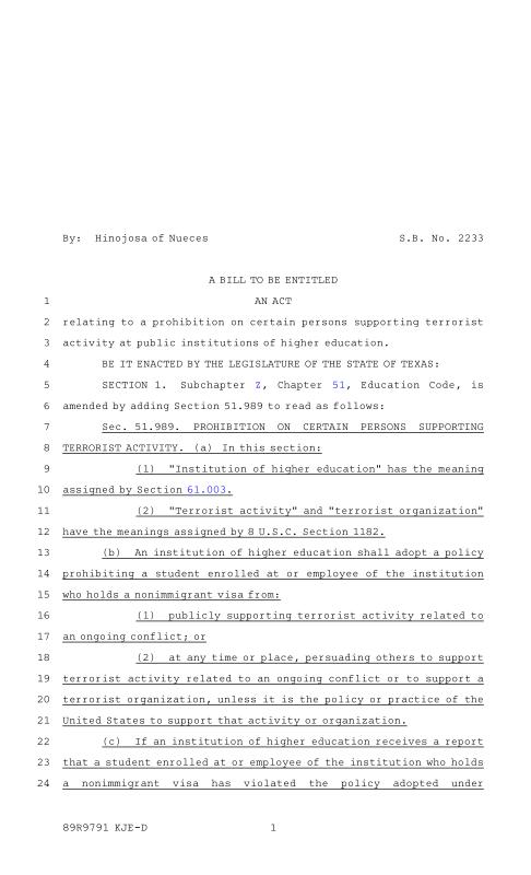 dropbox/COLLECTION- Legal/State Legislation/Texas/89(R) SB 2233 - Introduced version.pdf