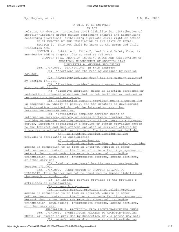dropbox/COLLECTION- Legal/State Legislation/Texas/Texas-2025-SB2880-Engrossed.pdf