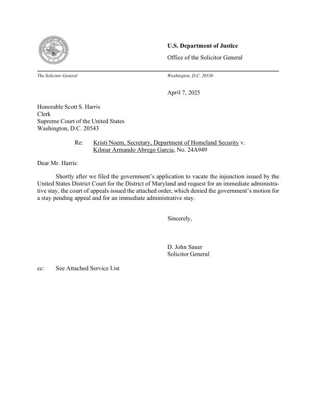dropbox/COLLECTION- Legal/Supreme Court/No. 24A949/20250407124131372_24A949 Abrego Garcia Letter FINAL.pdf