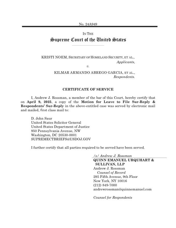 dropbox/COLLECTION- Legal/Supreme Court/No. 24A949/20250409011412487_2025.04.09 Respondents Mot for Leave to File Sur-Reply - Cert of Service.pdf