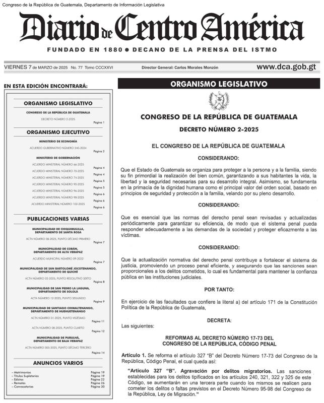 dropbox/COLLECTION- Legal/World Legislation/Guatemala/Diary of Central America Decree 2-2025 3-7-2025 Original.pdf