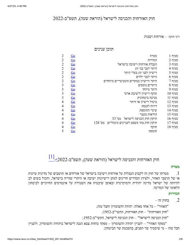 dropbox/COLLECTION- Legal/World Legislation/Israel/Citizenship and Entry into Israel Law (Temporary Provision), 2022 Original.pdf