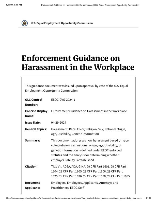 dropbox/COLLECTION- Legal/EEOC/Enforcement Guidance on Harassment in the Workplace _ U.S. Equal Employment Opportunity Commission.pdf