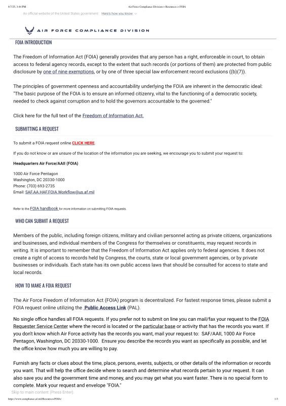 dropbox/COLLECTION- Legal/FOIA and Public Access/FOIA 4-7-25/Air Force Compliance Division _ Resources _ FOIA.pdf