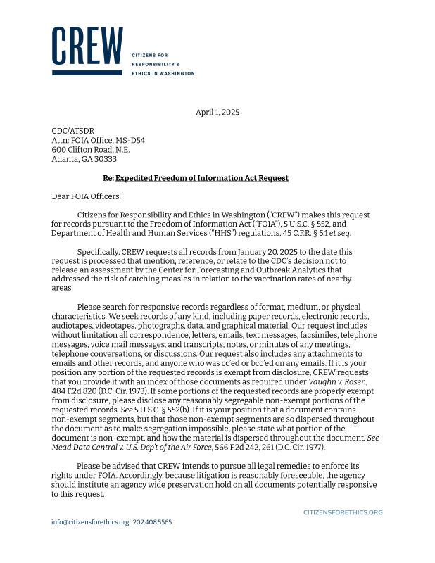 dropbox/COLLECTION- Legal/FOIA and Public Access/FOIA 4-7-25/CDC FOIA #0 - Measles Report.pdf