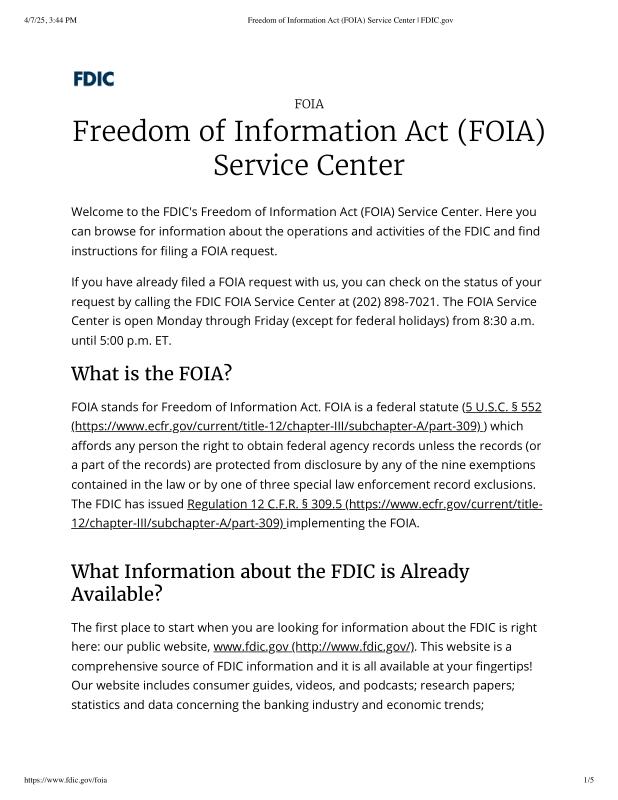 dropbox/COLLECTION- Legal/FOIA and Public Access/FOIA 4-7-25/Freedom of Information Act (FOIA) Service Center _ FDIC.gov.pdf