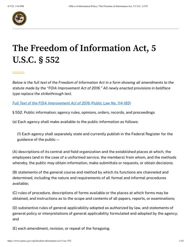 dropbox/COLLECTION- Legal/FOIA and Public Access/FOIA 4-7-25/Office of Information Policy _ The Freedom of Information Act, 5 U.S.C. § 552.pdf
