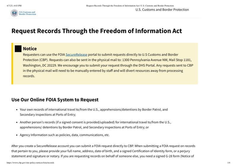 dropbox/COLLECTION- Legal/FOIA and Public Access/FOIA 4-7-25/Request Records Through the Freedom of Information Act _ U.S. Customs and Border Protection.pdf