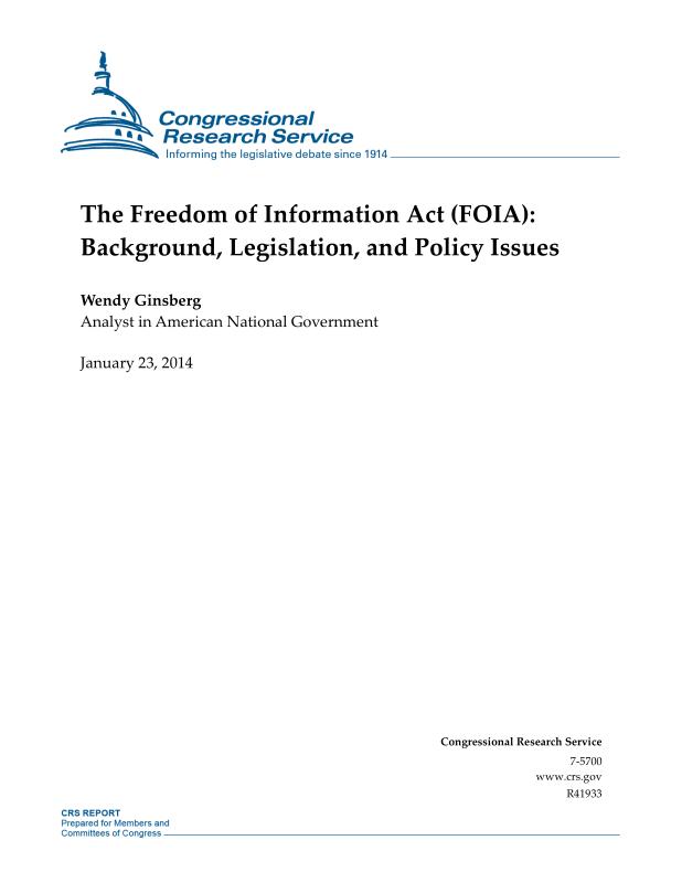 dropbox/COLLECTION- Legal/FOIA and Public Access/FOIA 4-7-25/The Freedom of Information Act (FOIA)_ Background, Legislation, and Policy Issues.pdf