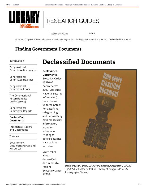 dropbox/COLLECTION- Legal/FOIA and Public Access/Gov FOIA 4-6-25/Declassified Documents - Finding Government Documents - Research Guides at Library of Congress.pdf