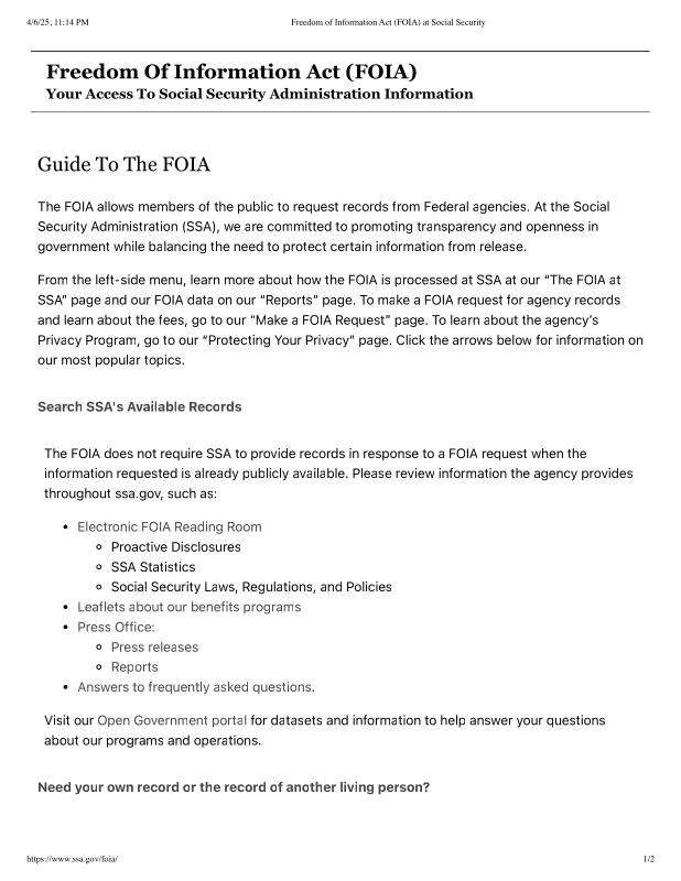 dropbox/COLLECTION- Legal/FOIA and Public Access/Gov FOIA 4-6-25/Freedom of Information Act (FOIA) at Social Security.pdf