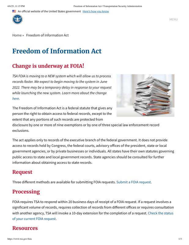 dropbox/COLLECTION- Legal/FOIA and Public Access/Gov FOIA 4-6-25/Freedom of Information Act _ Transportation Security Administration.pdf
