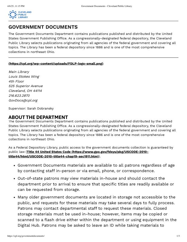 dropbox/COLLECTION- Legal/FOIA and Public Access/Gov FOIA 4-6-25/Government Documents - Cleveland Public Library.pdf