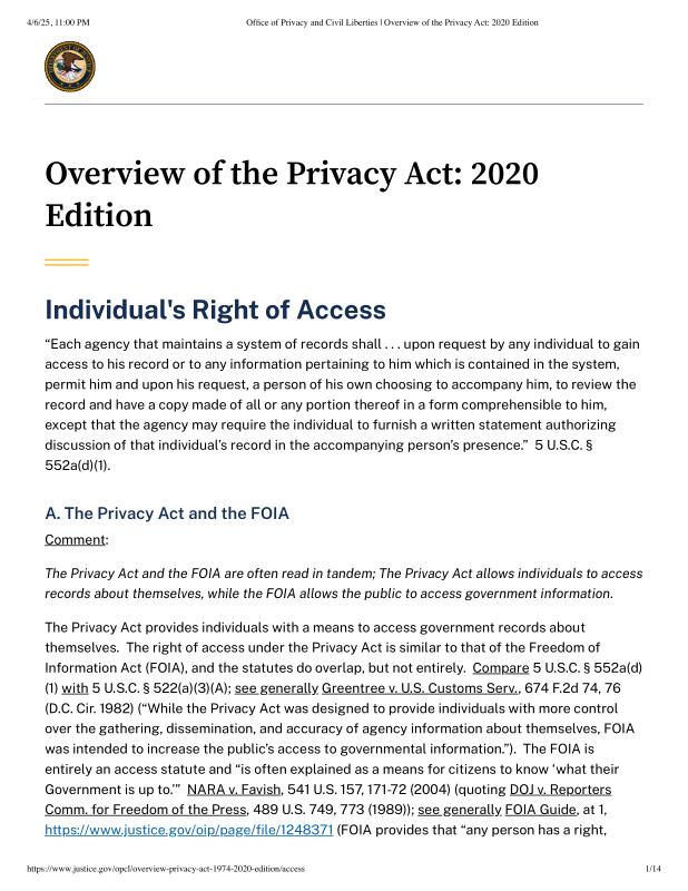 dropbox/COLLECTION- Legal/FOIA and Public Access/Gov FOIA 4-6-25/Office of Privacy and Civil Liberties _ Overview of the Privacy Act_ 2020 Edition.pdf