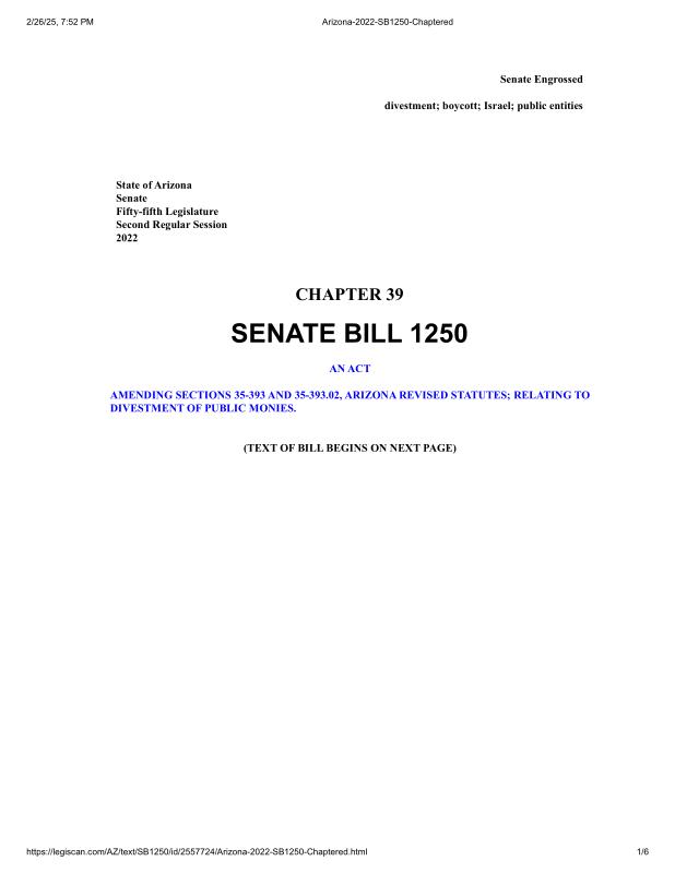 dropbox/COLLECTION- Legal/Laws in the US about Israel/Arizona-2022-SB1250-Chaptered.pdf