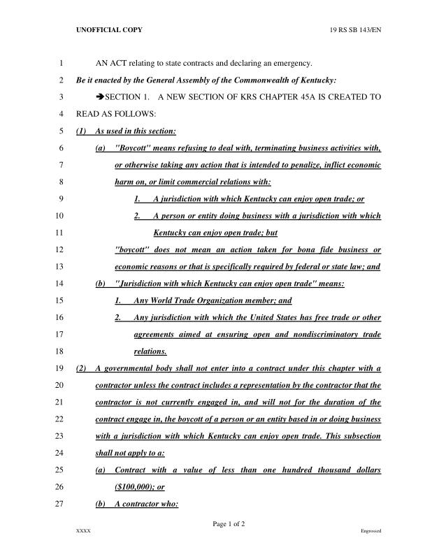 dropbox/COLLECTION- Legal/Laws in the US about Israel/Kentucky-2019-SB143-Enrolled.pdf